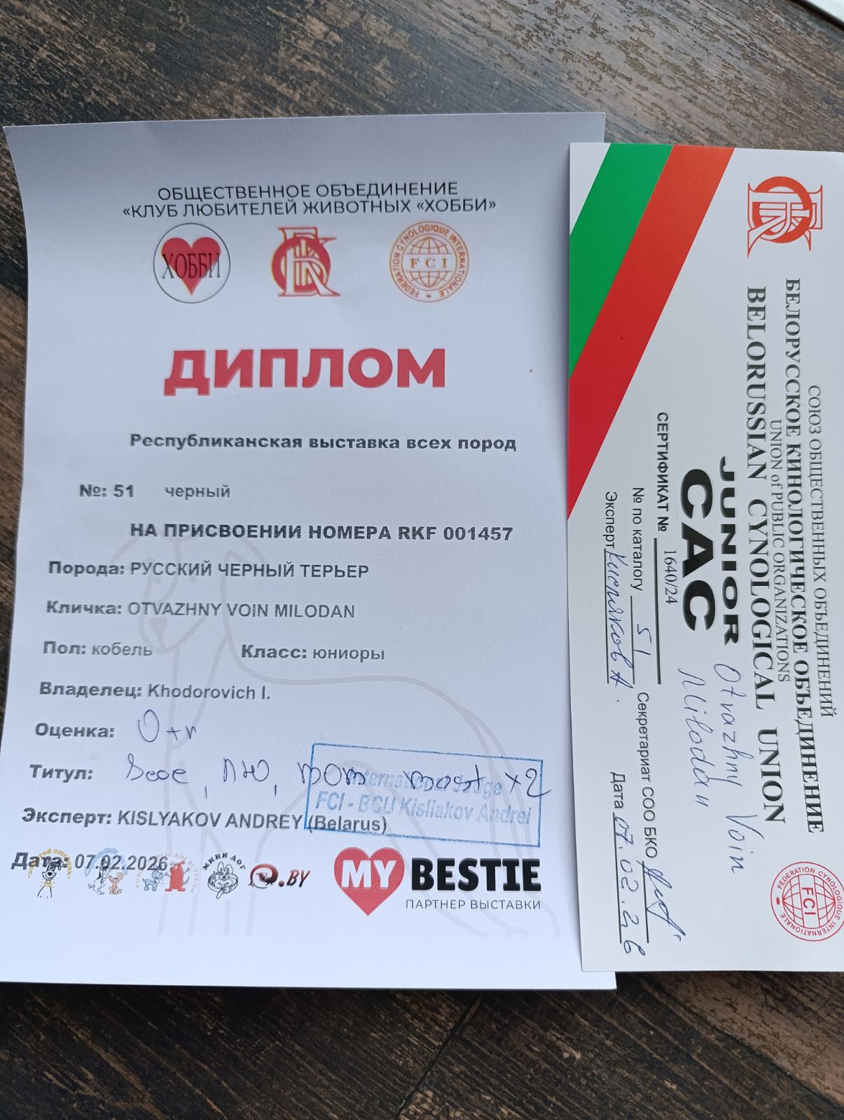 Минск (РБ)07.02.2026 Республиканская выставка собак всех пород г. Минск (РБ), эксперт Андрей Кисляков (РБ). Otvazhny Voin MILODAN (FN Ombudsman x OV Iliana) класс юниоров - отл. JCAC, JBOB, BOB! Закрыл титул Юный Чемпион Беларуси! Поздравления владельцам Игорю и Юлии! Грумер/ хендлер Светлана Перович.