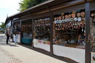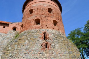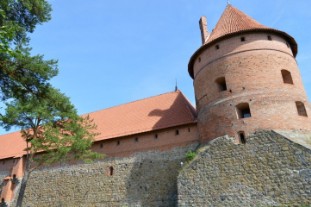 Тракайский замок. По летописной легенде, великий князь литовский Гедимин после успешной охоты обнаружил прекрасное место недалеко от города Кернаве, решил воздвигнуть на нём замок и перенести сюда столицу. Во второй половине XIV века здесь, в Старых Троках (Сянейи Тракай), уже стоял каменный замок. Правил им в 1337—1382 сын Гедимина трокский князь Кейстут. Около 1350 года в этом замке родился Витовт. В 1375 году Кейстут перенёс свою столицу из Старых Трок в защищённые озером Новые Троки, где был построен Полуостровной замок. Замок в Старых Троках в 1391 году был разрушен и больше не восстанавливался. Участок земли с остатками замка Витовт в 1405 году подарил монахам бенедиктинцам. Монастырь стоит на старом замчище. Трокский Полуостровной замок был построен Кейстутом в 1370-е годы на берегу озера Гальве (или Трокского озера). Он был разрушен во время междоусобиц 1382—1383 годов и вновь отстроен лишь в конце правления Витовта. Трокский Островной замок был окончен в 1409 году. Он был мощнейшим и наиболее величественным во всем Великом Княжестве Литовском. Это была одна из самых неприступных крепостей во всей Восточной Европе: ни разу за всю историю врагам не удалось его завоевать. Островной замок сразу стал основной резиденцией великого князя Витовта. После Грюнвальдской битвы 15 июля 1410 года замок утратил своё военное значение, так как основной противник Великого княжества Литовского — Тевтонский орден — был разгромлен. В это время замок переживал период своего расцвета. Роскошные приемы и пиры устраивались в честь иностранных послов и высоких гостей, съезжавшихся в замок со всей Европы. В Островном замке 27 октября 1430 года умер Витовт. К концу XVI века Троки постепенно отступают на задний план в политической жизни страны. Расположенность вдали от главных торговых путей привела город к экономическому упадку. Вскоре Троки становятся местом ссылок неугодной знати, а замок использовался как тюрьма. После войны с Москвой 1655—1660 годов развалины заброшенного замка постепенно разрушались.