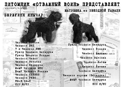 14-15 мая. В г. Лодзь (Польша) прошла XXIV Международная выставка собак всех пород. По каталогу заявлен 21 черный русский терьер, из них 14 сук. Эксперт - Hassi Assenmacher-Feyel (Germany). Класс - открытый. Отважный Воин Берислава впервые приняла участие в международной выставке и заняла 2 место из 4. Отчет о путешествии и выставке будет опубликован чуть позже.