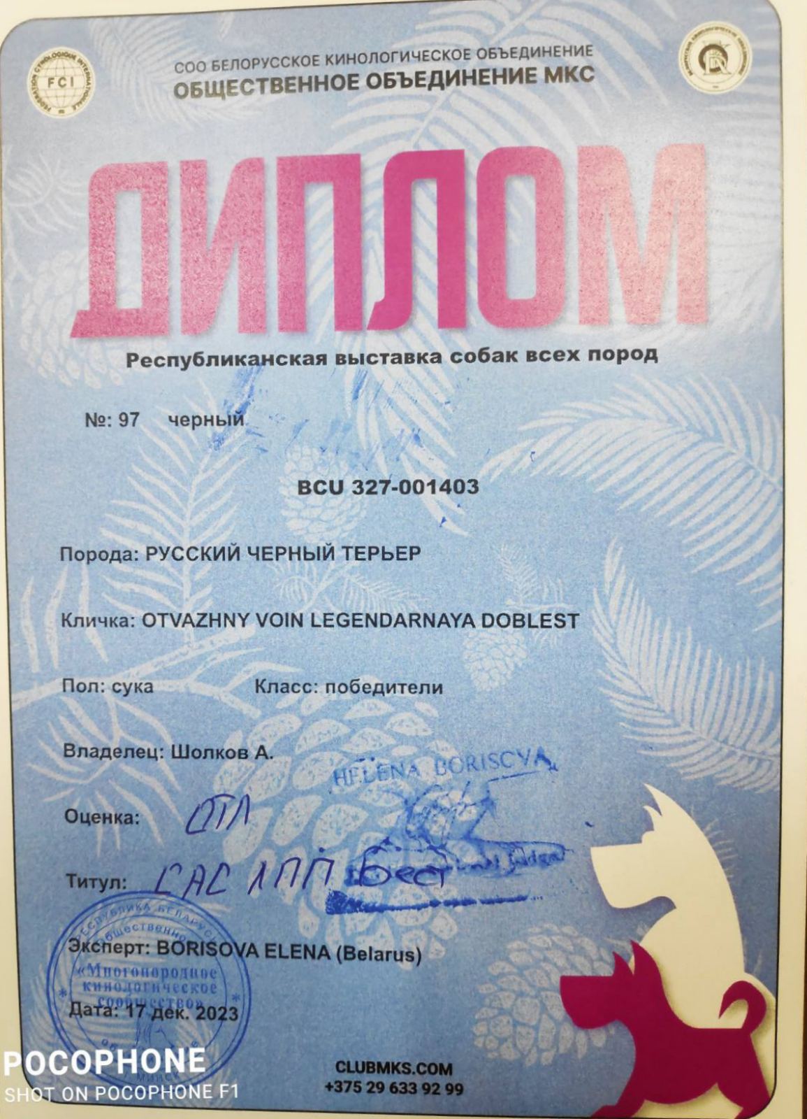 Спасибо уважаемому эксперту Анастасии Асадчей (РБ) за высокую оценку выпускниц питомника! Спасибо организаторам клубу "Созвездие псов" за отличную организацию чемпионата!