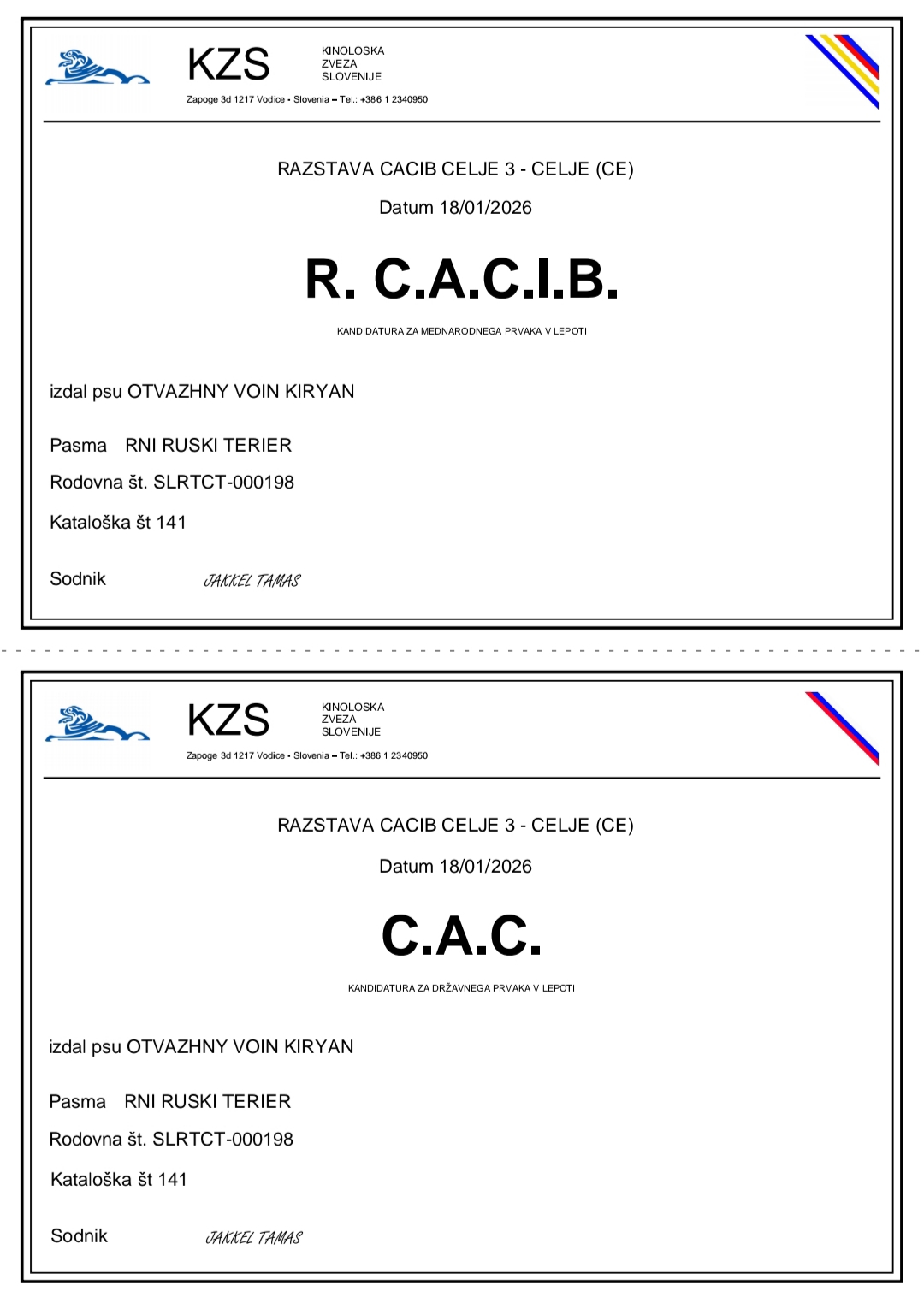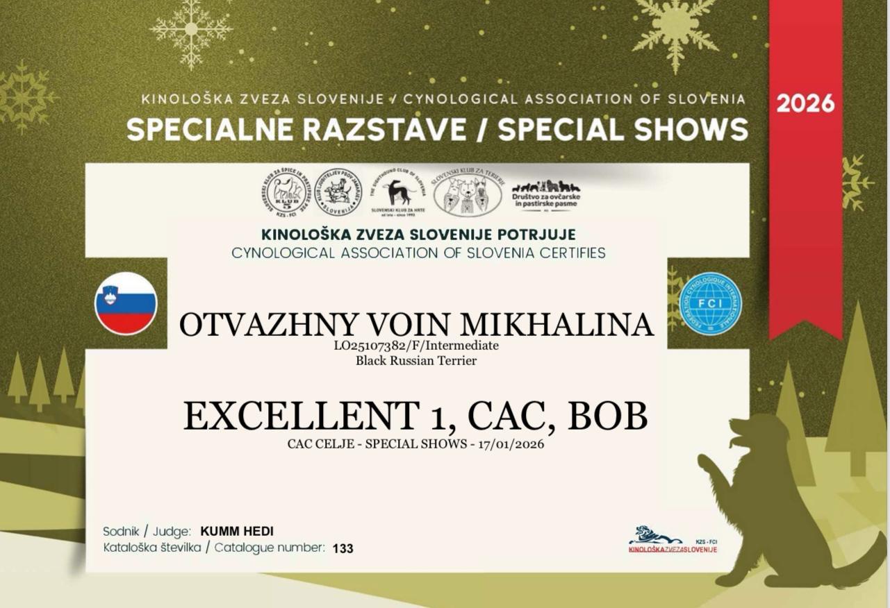 16.01-18.01.2026. Целе (Словения) 2x IDS. Otvazhny Voin KIRYAN (OV Dragon Udachi x OV Epifanya) - 2 x exl, 2 x CAC, 2 x rCACIB! Поздравления владелице/ грумеру/ хендлеру Эльвире Подлисецкой!