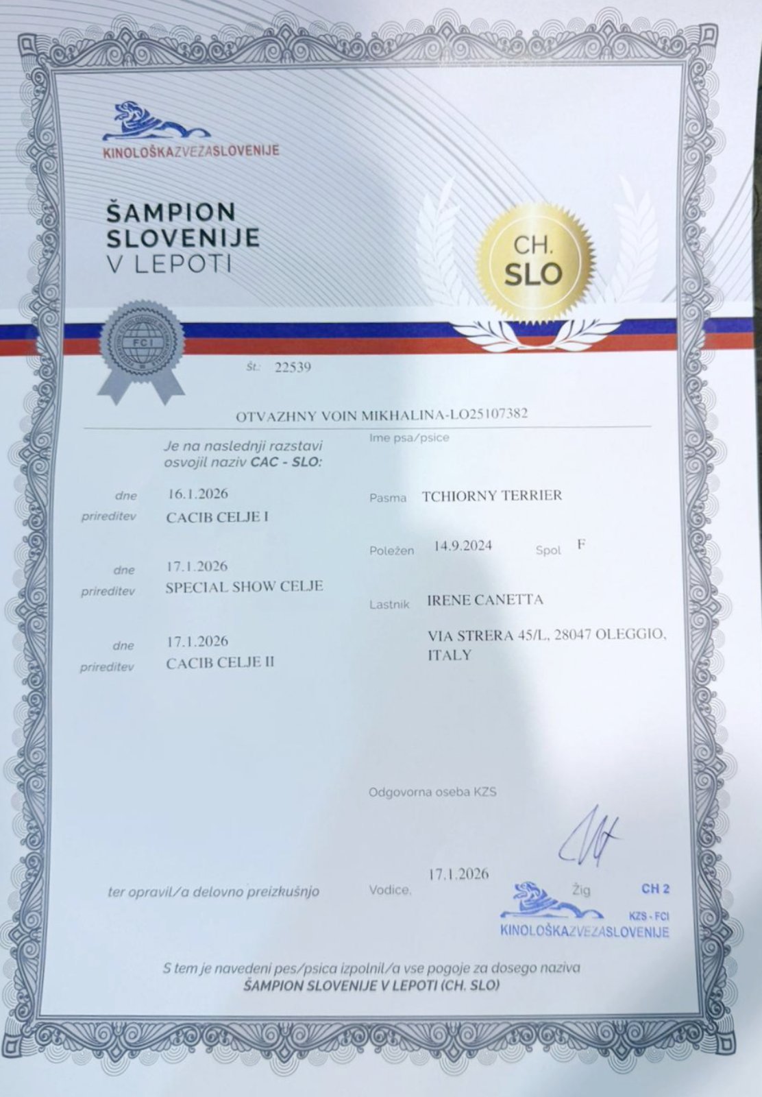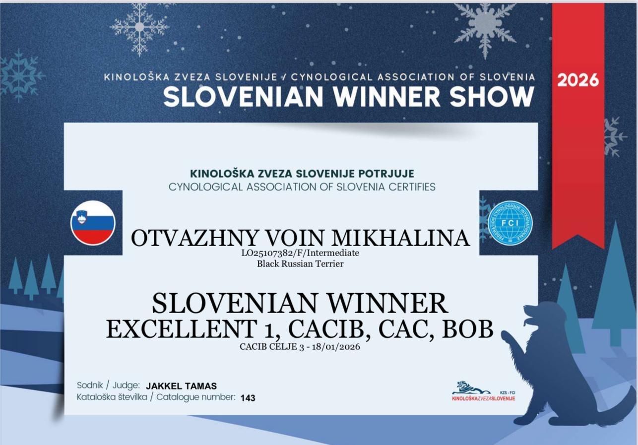 16.01-18.01.2026. Целе (Словения) 3 х IDS + SDS.Otvazhny Voin Mikhalina (FN Ombudsman x OV Iliana) - 4 x exl, 4 x CAC, 3 x CACIB, BOS, 3xBOB! BOG (17.01 - IDS) - 3/50!Slovenian Winner Show!Чемпион Словении!Поздравления владелице/ грумеру/ хендлеру Irene Canetta!