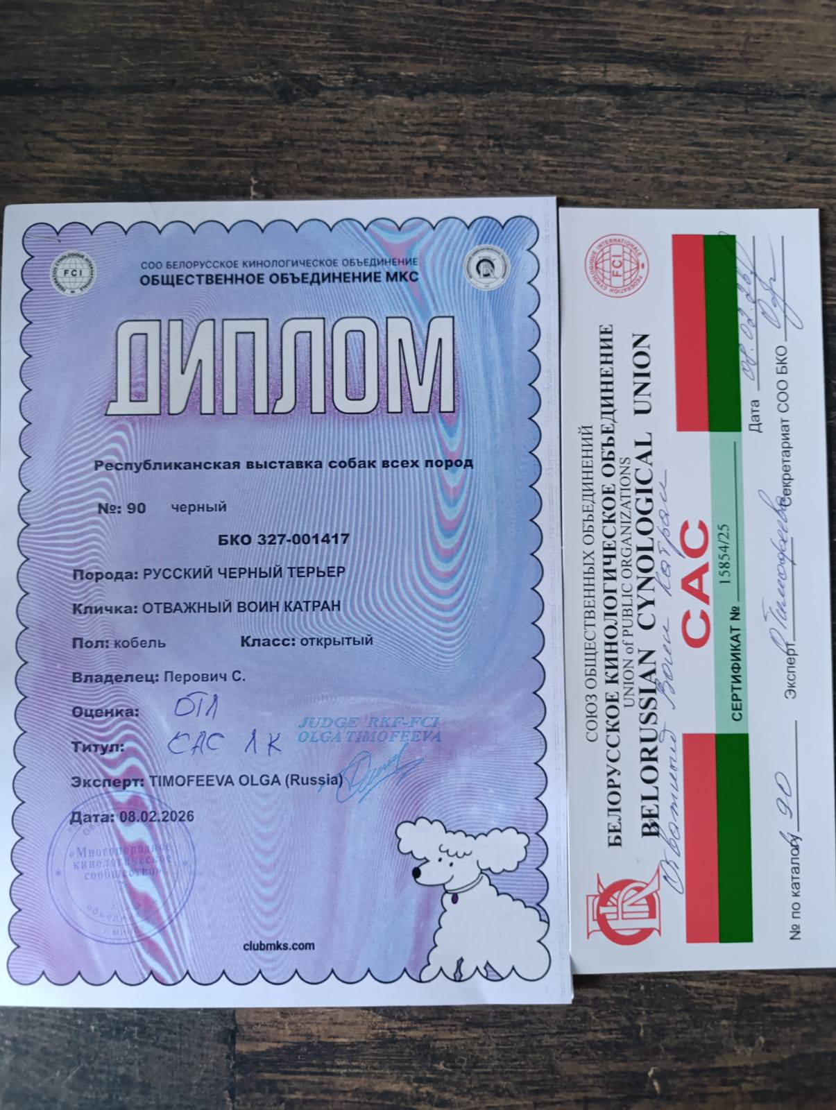 Минск (РБ)08.02.2026 г.Минск (РБ) 2 х NDS. Эксперты Денис Дудко (РБ), Ольга Тимофеева (РФ). Отважный Воин КАТРАН (ОВ Дракон Удачи х ОВ Епифания) класс открытый - 2 х отл, 2 х САС, 2 х ЛК! Поздравления всем причастным!!!
