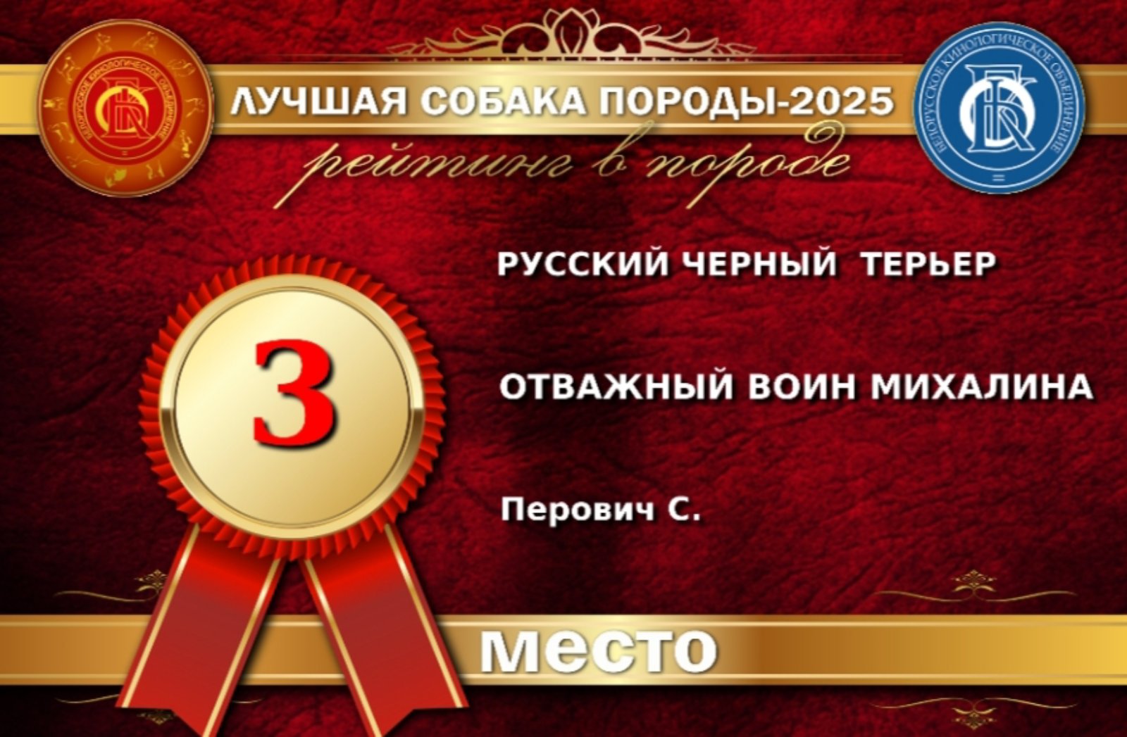 2025 год был очень продуктивным в жизни питомника. Наши младшие Отважные Воины дружно и успешно посещали выставки и добились высоких результатов. Много новых чемпионских титулов упало в капилочку питомника. И ярким завершением 2025 года стало объявление результатов рейтинга. Трое выпускников - тройка лучших рчт Беларуси! Поздравляю владельцев! Так держать!!!